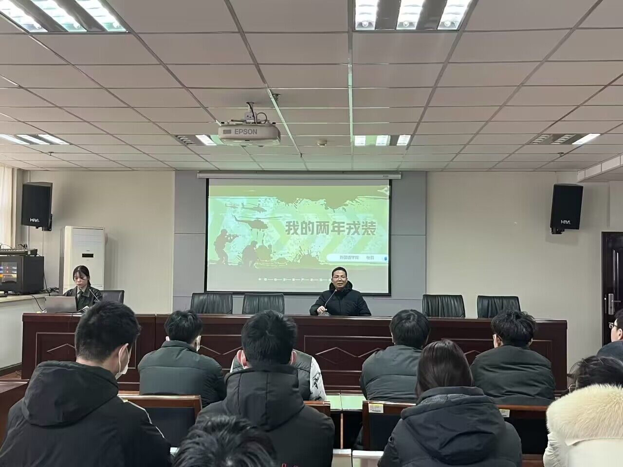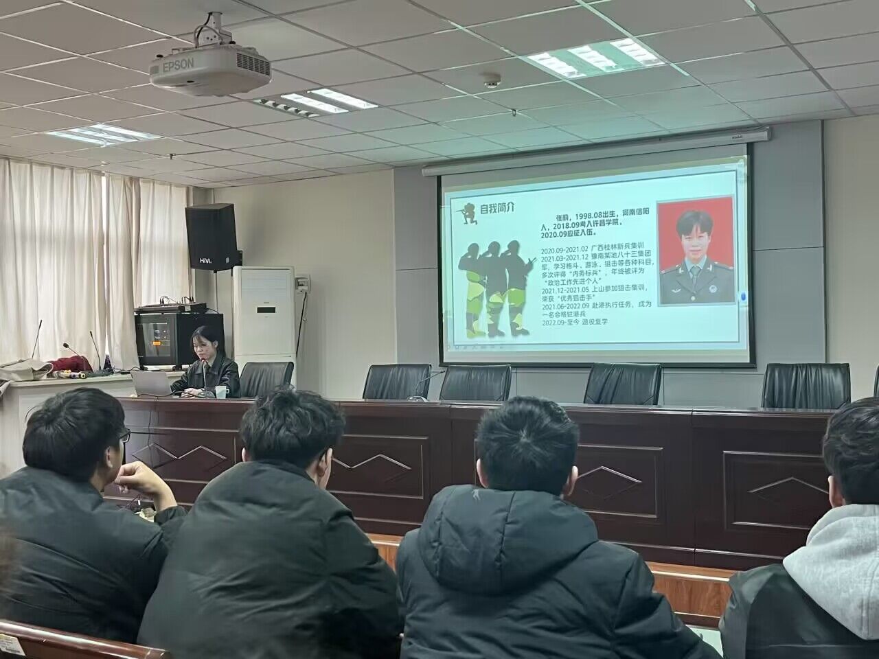 为积极鼓励在校大学生投笔从戎,踊跃报名参军,支援国防建设,3月17日,我院在E-1917会议室举行退伍大学生军旅生涯讲座。202O级退伍大学生张莉以“我的两年戎装”为主题,分享了自己的参军经历。会议由院党委副书记陈化宇主持,学院全体男生参加。
