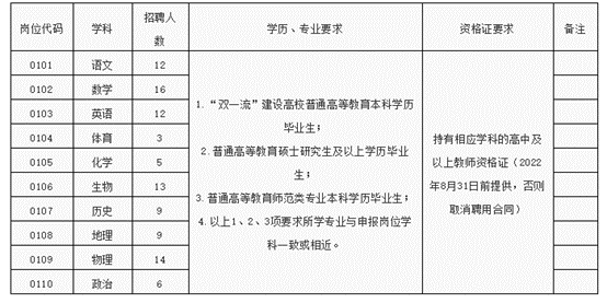 (三)学历、专业及教师资格条件(详见职位表)
