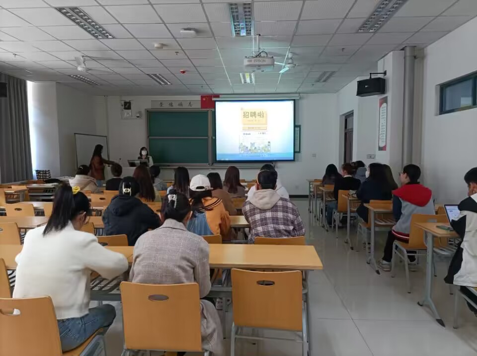 2023年3月3日下午三点,许昌龙祁电子商务有限公司在我校文综楼108教室对外国语学院2023届商务英语专业毕业生进行招聘宣讲。