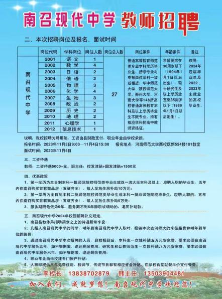 【招聘信息】南召现代中学教师招聘宣讲会(线下)