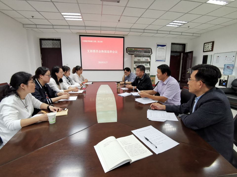 2019年9月17日至20日,各教工党支部进行党支部换届工作,党总支书记王国志分别参加三个教工党支部召开党员大会,指导换届工作;传达许昌学院“不忘初心、牢记使命”主题教育动员大会及主题教育工作部署会精神,学习传达了许昌学院“不忘初心、牢记使命”主题教育工作方案,学习传达了闫书记许昌学院“不忘初心、牢记使命”主题教育动员会及工作部署会上的讲话,学习传达了习近平总书记在河南考察期间的重要讲话和指示精神。部署外国语学院忘初心牢记使命主题教育工作。