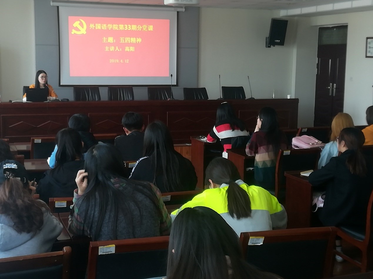 4月12日下午六点,外国语学院于文综楼1917召开以“五四精神”为主题的入党积极分子培训课。此次党课,由高阳老师主讲阐述了不同时期的青年有不同的历史责任和历史担当,使入党积极分子思想觉悟进一步提高。