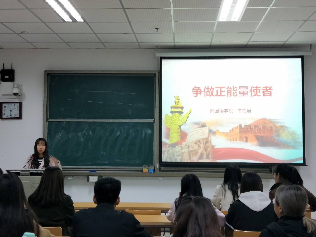 11月8日下午,在文综楼202,牛怡晨老师以“学习习近平七年知青岁月,争做正能量使者”为本期入党积极分子上党课。本次,牛怡晨老师主要根据《习近平的七年知青岁月》为我们讲述如何做一位正能量使者。众所周知,李克强总理为当时高干子弟出身,家世优渥,但在他的青年时代,他所选择的并不是留在城市过着条件较好的工人生活,而是响应号召“上山下乡,做知青”——过四关,做正能量使者。在他的知青岁月中,他面对困难坚持不懈而日趋成熟,而成熟的不只是为人处世,更是思想。古有“解衣推食”,今有李总理为乞食老汉倾其所有。作为当代大学生、青年、未来的接班人,我们更应该学习这种精神,争做正能量使者。