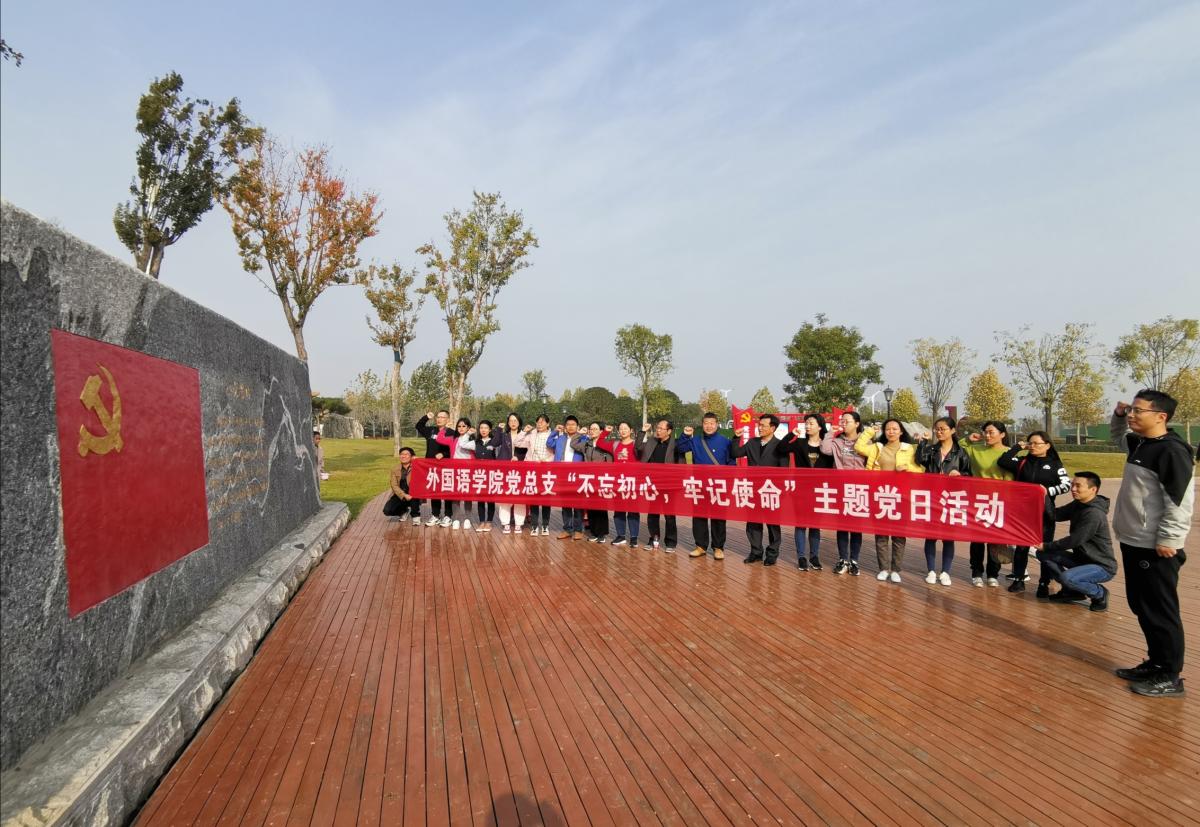 2019年11月9日,外国语学院党总支组织教工党员到鄢陵县鹤鸣湖党建主题公园,开展“初心使命四问”主题党日活动。
