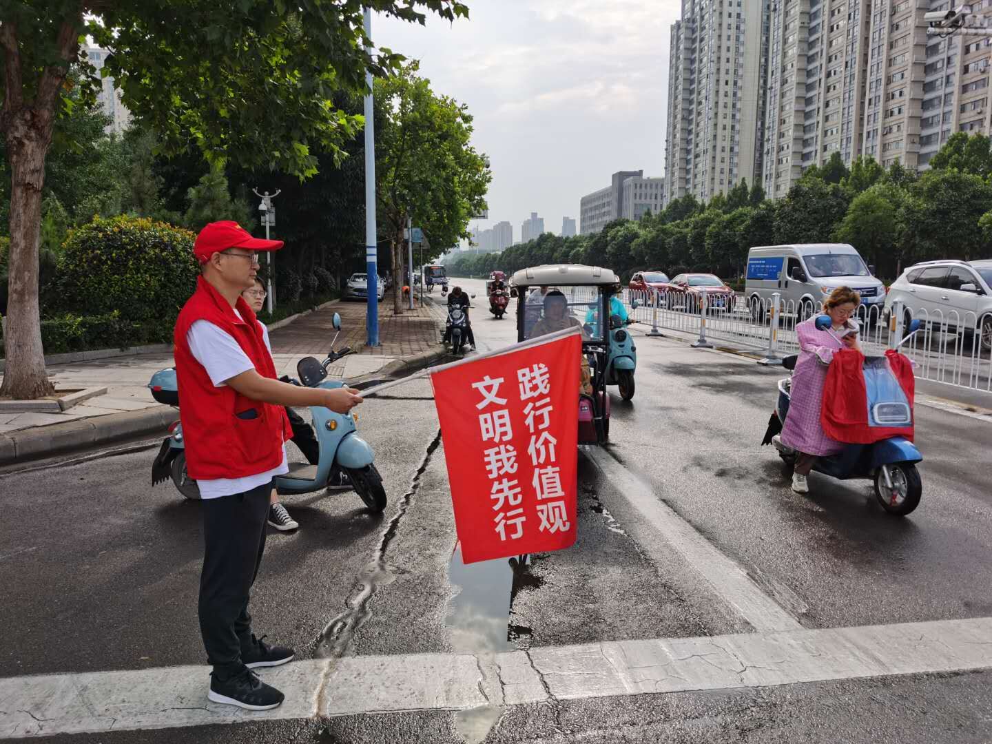 8月14日,外国语学院党委依托许昌市创建全国文明城市工作,组织党员教师开展“文明安全交通出行”志愿服务活动,助力我市创建全国文明城市。