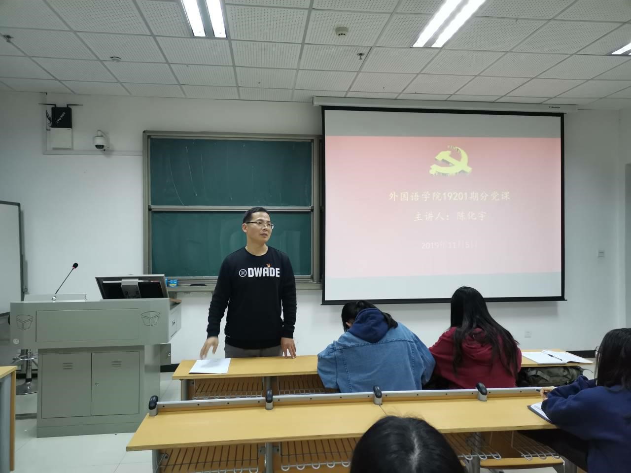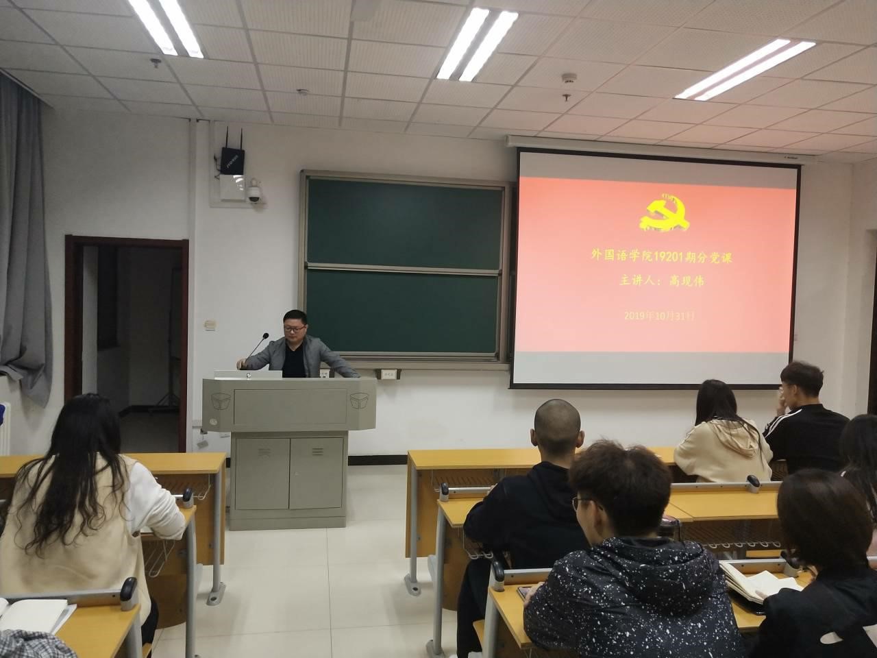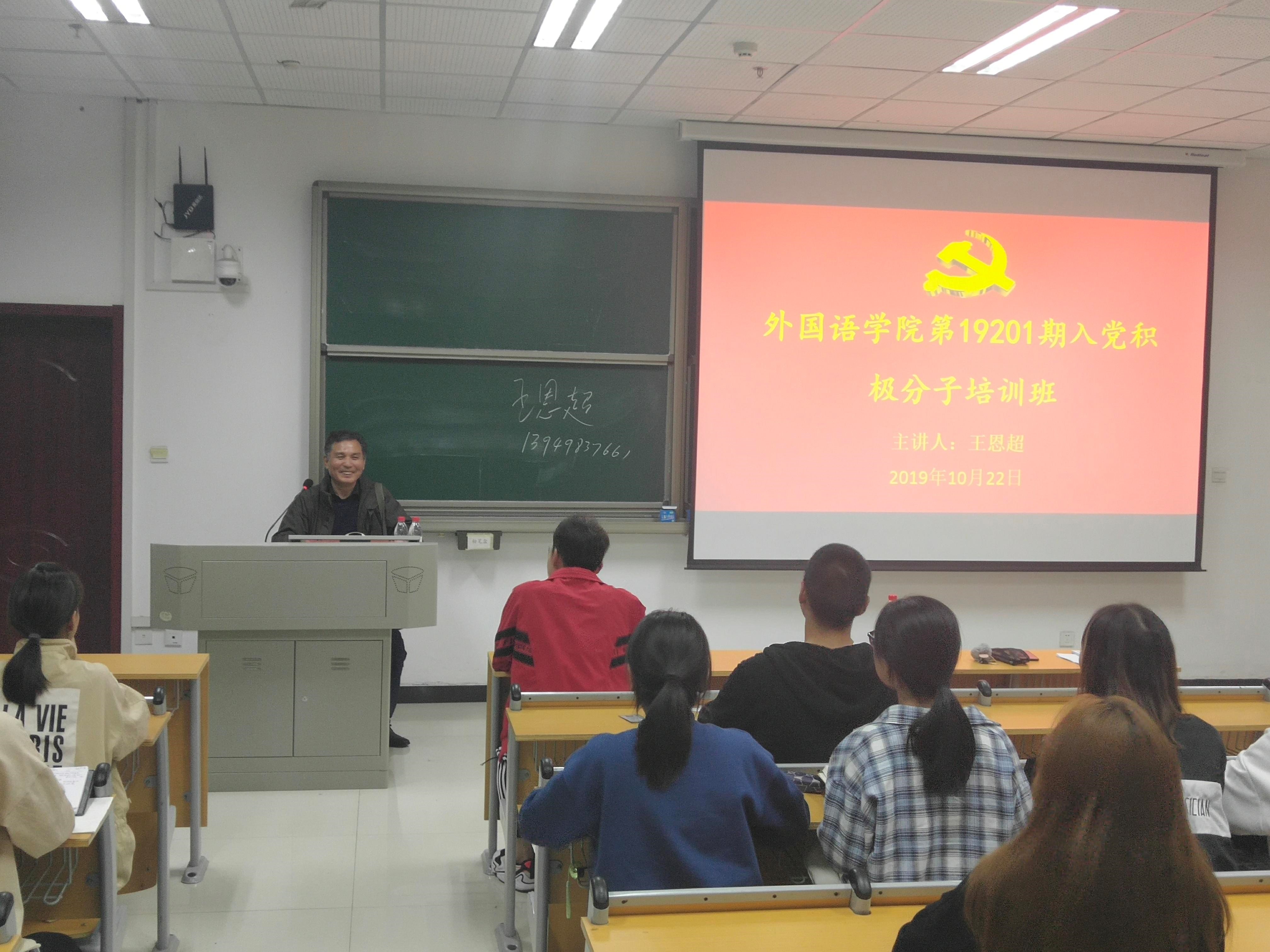 2019年10月24日,外国语学院在文综楼416开展19201期入党积极分子培训课,主题为“如何成为一名合格的学生干部”,主讲人是王萌。