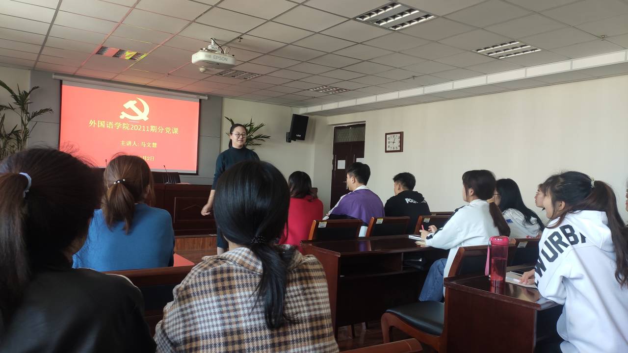 11月3日,外国语学院于文综楼1917会议室开展了以“中国共产党党团的发展历史”为主题的入党积极分子培训课。本次党课由李钧老师介绍了中国共产党的发展史,并鼓励积极分子们平时要多次回顾党史、且在回顾时主动认真思考,以获得不一样的收获。