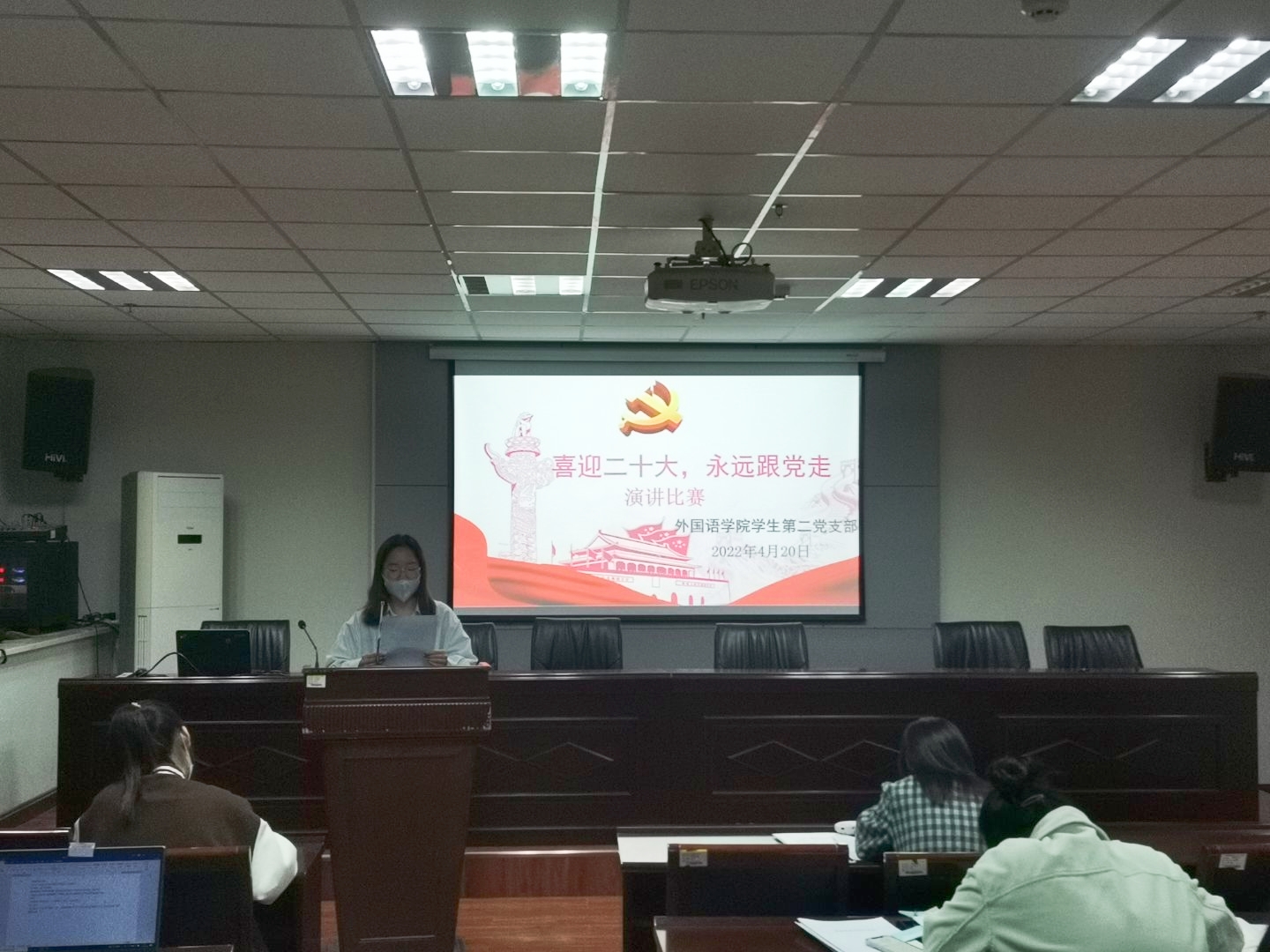 2022年4月20日,我院第67期发展对象培训班于文综楼1917会议室开展“青春不停步,永远跟党走”主题演讲比赛。