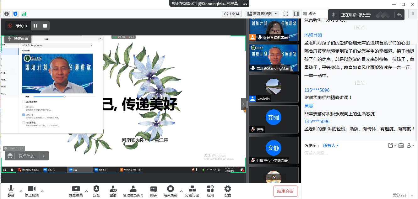 参加培训的老师们对因疫情无法面对面感受孟老师的风采而遗憾,但是也纷纷表示孟老师的线上讲座已深深感染了大家。老师们对生活、教育和教学都有了全新的认识,深刻体会到做终身学习的、有智慧、有爱心、专业化的教师,会带来无尽的幸福感、满足感、成就感。(图片由赵菁晶提供)