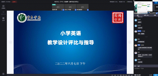 6月7日下午,我院邀请郑州市金水区柳林中心学校教导主任、教研员朱晓春老师线上参加了国培计划小学英语学员教师的教学设计评比与指导,导师团队和50名学员相聚“云端”参加了活动。