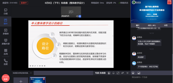 朱晓春老师从单元整体教学的内涵出发,以理论和课例分析相结合的方式系统讲解了单元教学设计途径,并基于主题意义给出了建议。首先,朱老师介绍了单元整体教学的概念,并基于课程标准和教学目标变化,详述了单元整体教学的必要性和重要性,即单元主题教学是从学科本质出发,对单元内容进行结构化处理,秉持英语学习活动观,让学生的学习真实发生。接下来,朱老师以理论讲解、教学案例和教学视频分析相结合的方式,系统讲解了单元整体设计的具体途径。朱老师认为单元整体教学设计要分三步走,包括分析单元语篇内容及内在关联从而明确单元的主题意义,根据主题意义统筹设定单元教学目标,围绕单元主题意义、整合学习内容并安排基于英语学习观的具体学习活动,从而促进学生深化对主题意义的认知。