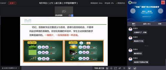 孟江涛老师通过一个个生动的课堂实录,向参训学员展示了如何在实际教学时将语料和资源进行优化组合,设计适合小学生年龄特点的丰富、活泼的语音训练活动。老师们在教学中可以利用规律拼词读词,创编歌谣,补充符合语音知识的绘本等方式,帮助学生更好地学习语音知识、培养语音意识。小学英语语音教学“应注重语义与语境、语调与语流相结合,不要单纯追求单音的准确性;在轻松有趣的环境中,学生主动探索的教学效果是最好的。”