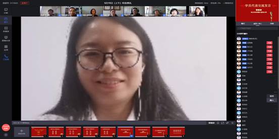优秀学员代表晋丽姿、应继阳分别在结业典礼上发言,表达了自己对本次国培在线学习的体会,并对国培管理团队的付出表示感谢。