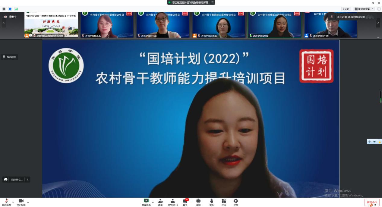 12月25日上午,许昌学院外国语学院以线上方式举行“国培计划(2022)”农村骨干教师能力提升培训项目—市级、县级骨干教师(小学英语)培训班开班典礼。国培管理团队全体成员与百名学员相聚云端,参加了此次开班仪式。外国语学院副院长刘立胜教授出席开班典礼并致辞,国培项目秘书赵菁晶主持了此次活动。