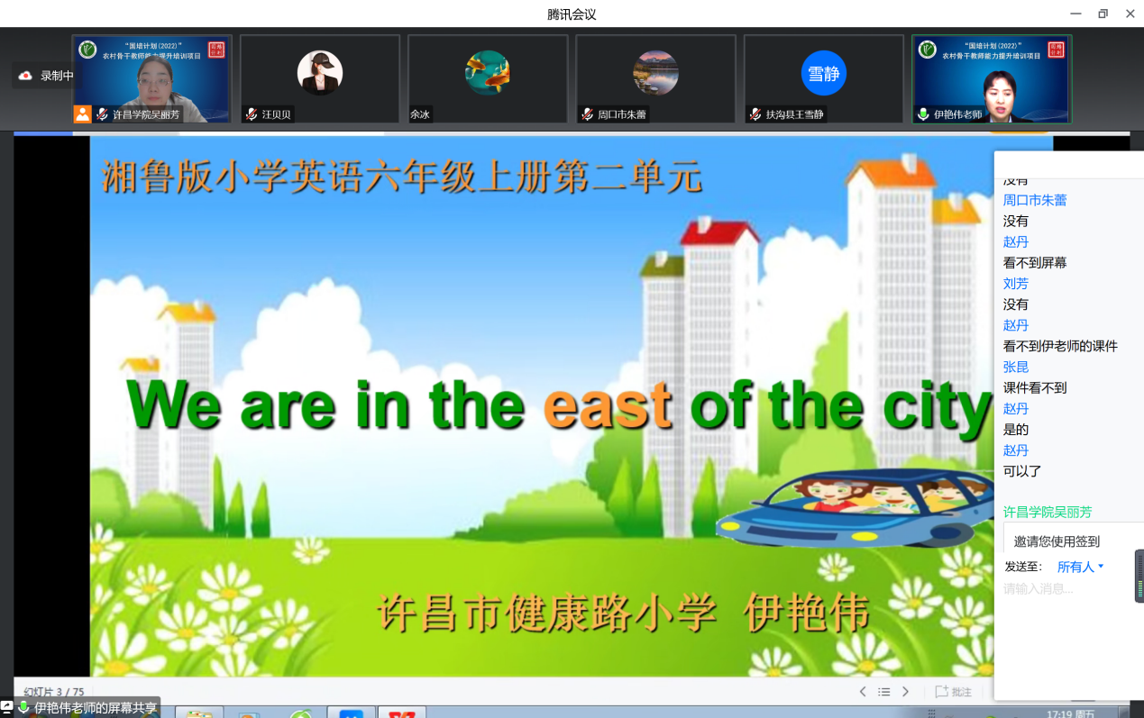 29日上午,国培学员观摩了伊老师湘鲁版四年级上册“I can run fast”及六年级上册“We are in the east of the city”两节课的教学视频。课堂上,伊老师采用卡片、图片、歌谣、游戏等方式设计丰富多彩的教学活动,充分调动同学们的多种感官,积极参与到课堂活动中,鼓励学员大胆表达,踊跃讨论,课堂气氛活跃,生动有趣,真真正正地实现了“轻松学,快乐学”教育理念。