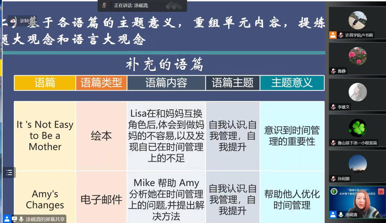 2023年1月4日下午,我院国培县级骨干教师培训班成功举办教学设计评比与指导活动。许昌市教研室初中英语兼小学英语教研员涂砚清老师为国培学员进行了教学设计指导,导师团队和学员相聚“云端”,参加了此次线上指导活动。