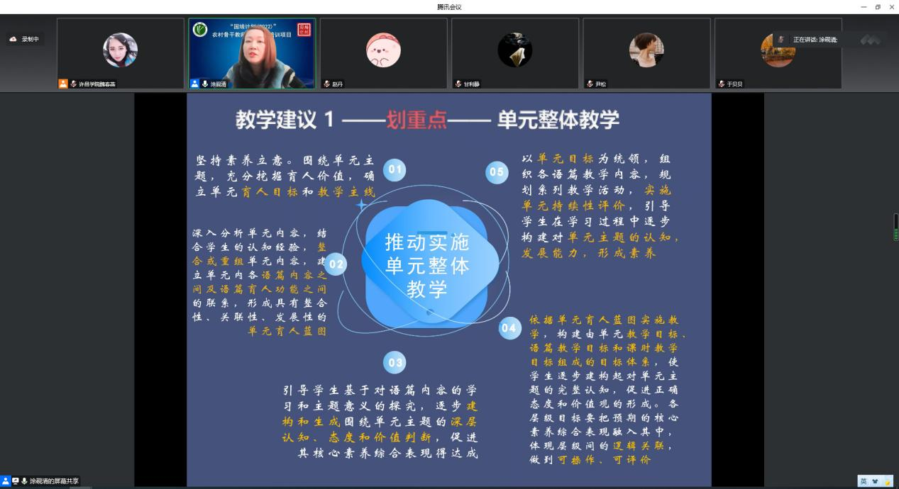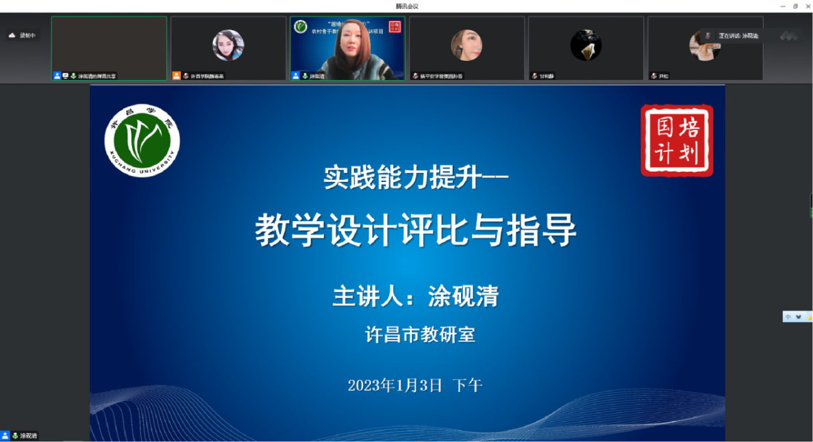2023年1月3日下午,我院国培市级骨干教师培训班成功举办教学设计评比与指导活动。许昌市教研室初中英语兼小学英语教研员涂砚清老师为国培学员进行了教学设计指导,导师团队和50名学员相聚“云端”,参加了此次线上指导活动。