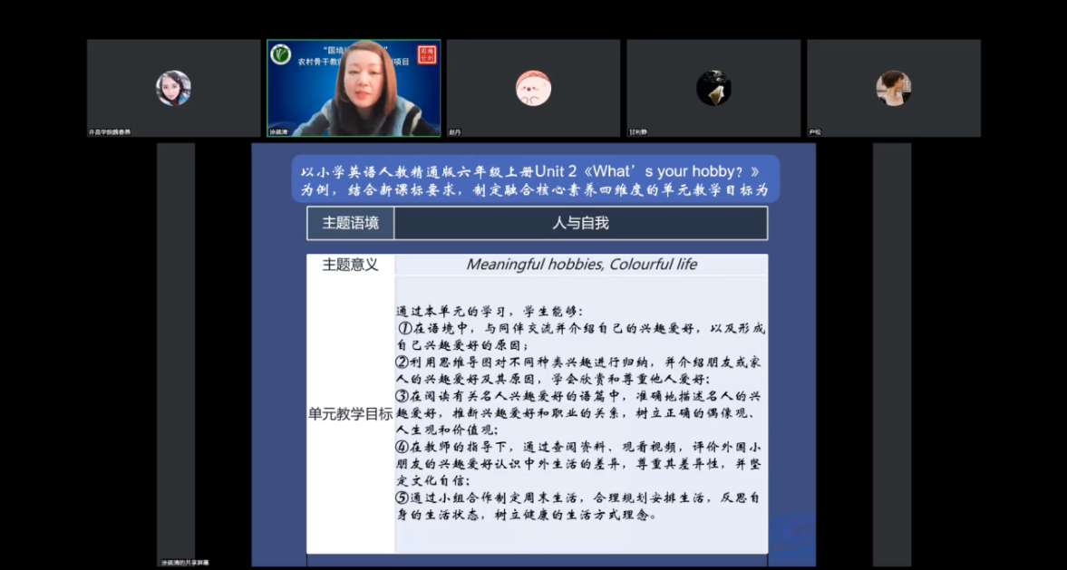 随后,涂砚清老师带领学员解读了小学英语新课标,特别聚焦了小学英语课程的六大基本理念和四大学科核心素养,总结归纳了新课标在落实单元整体教学、开展语篇研读及践行指向素养的六要素整合的英语学习活动观等方面的重要指示作用。