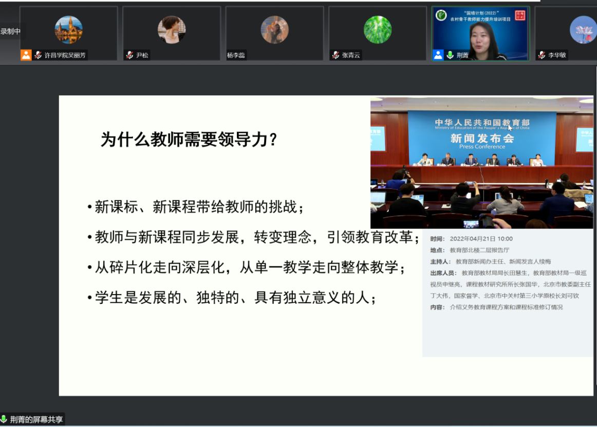 荆菁博士应邀为“国培计划(2022)”市级骨干教师培训班学员作讲座