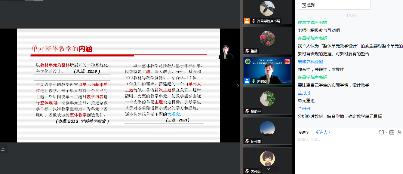 2022年12月31日,“国培计划(2022)”小学英语骨干教师培训班全体学员在线聆听了来自郑州市金水区柳林中心学校朱晓春的讲座。