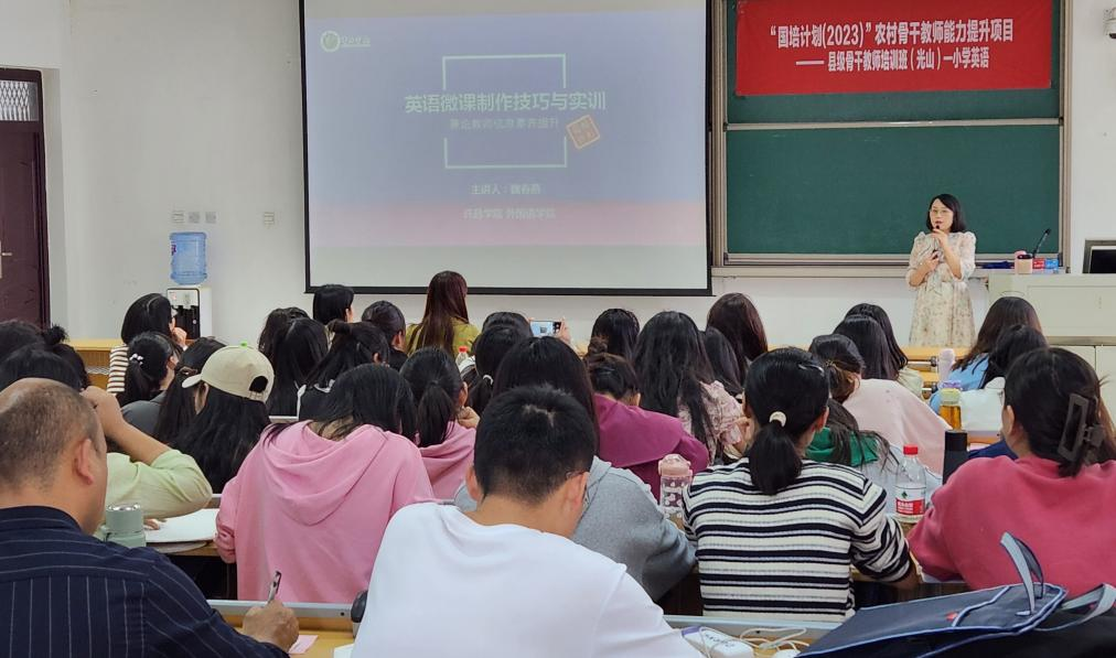 【专业实训指导】外国语学院副教授魏春燕为“国培计划(2023)”县级骨干教师培训班(光山)(小学英语)学员开展微课设计实践培训